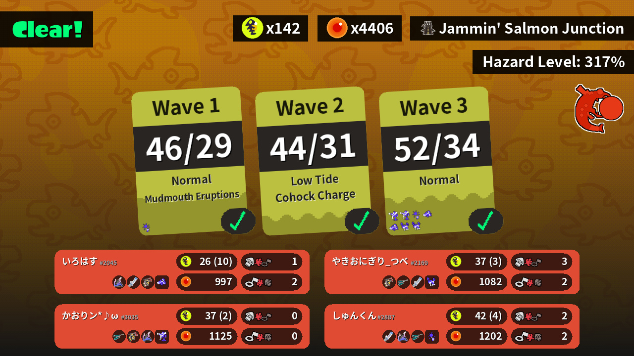 | Weapons | Slosher Mint Decavitator Douser Dualies FF | Mint Decavitator Slosher Jet Squelcher | Jet Squelcher Douser Dualies FF Slosher | Douser Dualies FF Jet Squelcher Mint Decavitator |