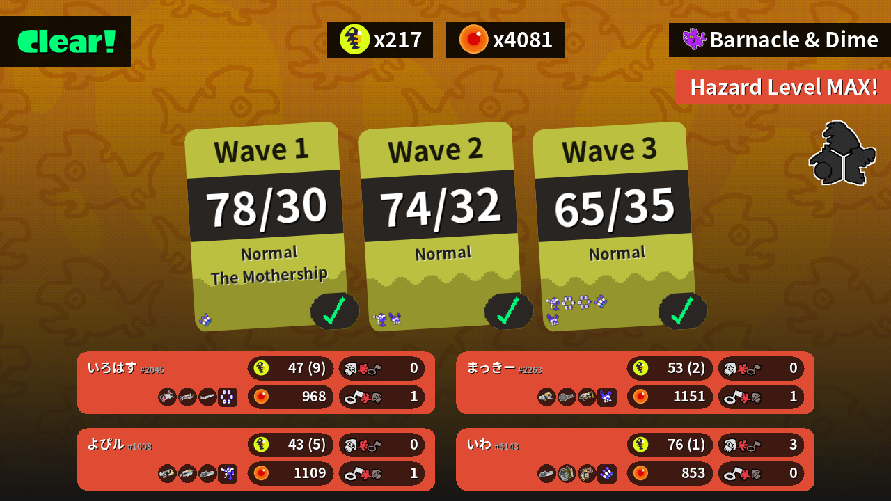 | Weapons | .52 Gal Grizzco Charger Classic Squiffer | Ballpoint Splatling Grizzco Slosher Douser Dualies FF | Grizzco Blaster Nautilus 47 Sploosh-o-matic | Splattershot Nova Grizzco Brella Ballpoint Splatling |