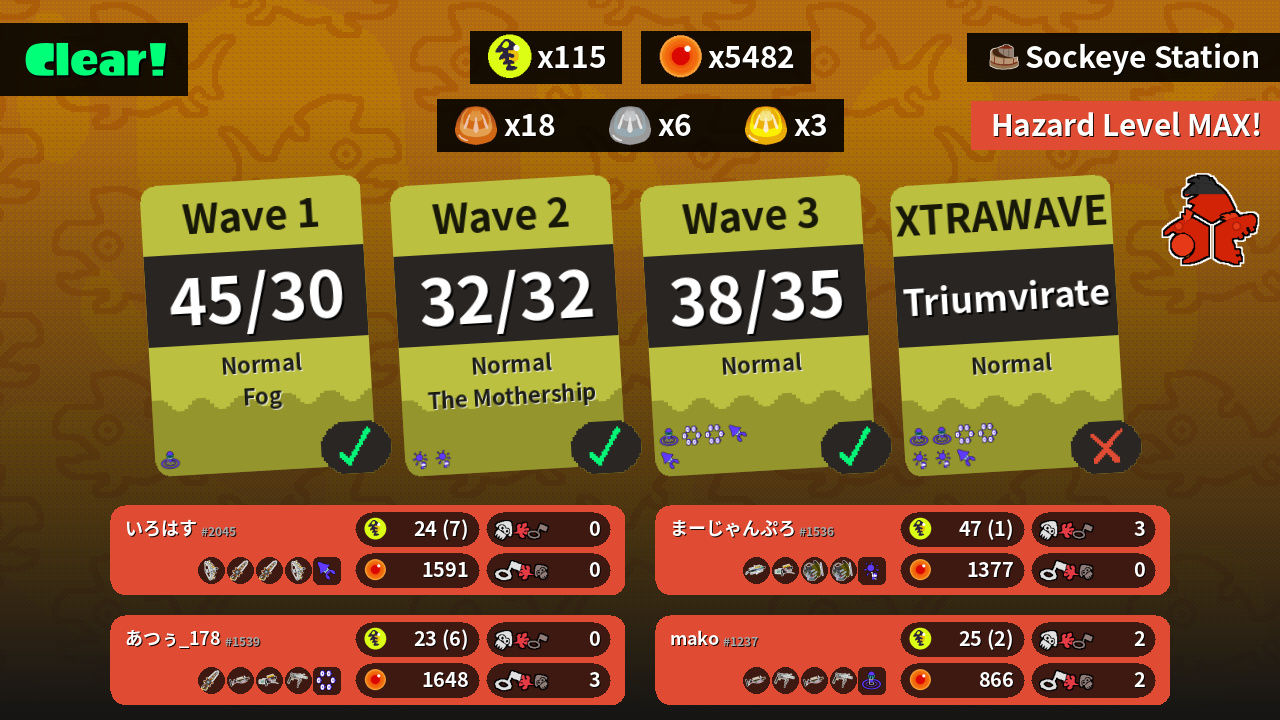 | Weapons | Grizzco Stringer Grizzco Splatana Grizzco Splatana Grizzco Stringer | Grizzco Brella Grizzco Blaster Grizzco Slosher Grizzco Slosher | Grizzco Charger Grizzco Roller Grizzco Charger Grizzco Roller | Grizzco Splatana Grizzco Charger Grizzco Blaster Grizzco Roller |