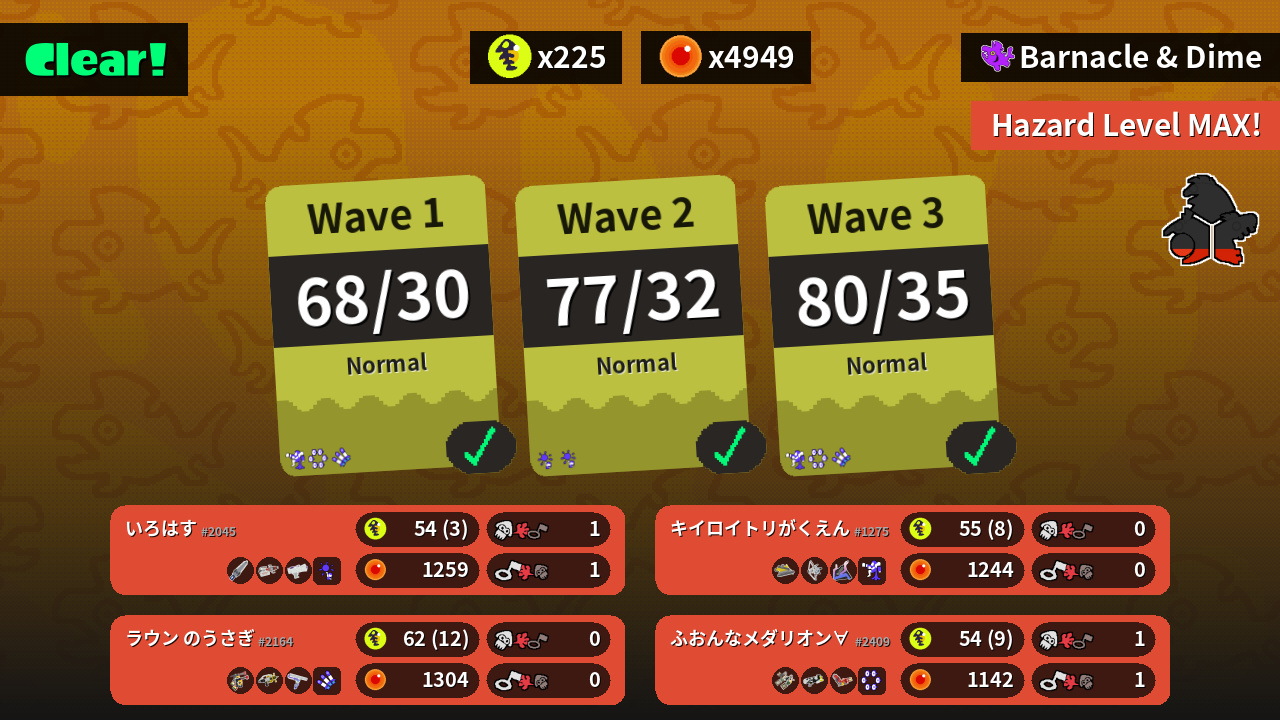 | Boss Salmonid | 21 | 30 | 21 | 25 |
