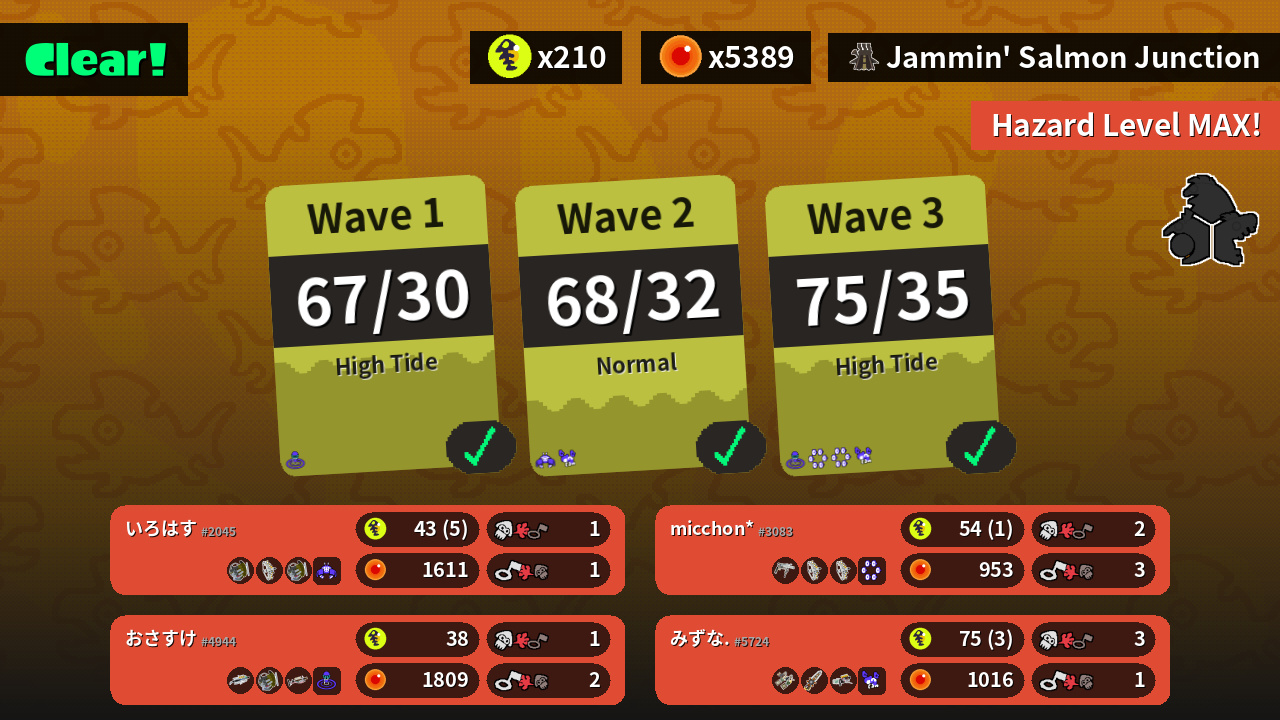 | Weapons | Grizzco Slosher Grizzco Stringer Grizzco Slosher | Grizzco Dualies Grizzco Splatana Grizzco Blaster | Grizzco Roller Grizzco Stringer Grizzco Stringer | Grizzco Brella Grizzco Slosher Grizzco Charger |