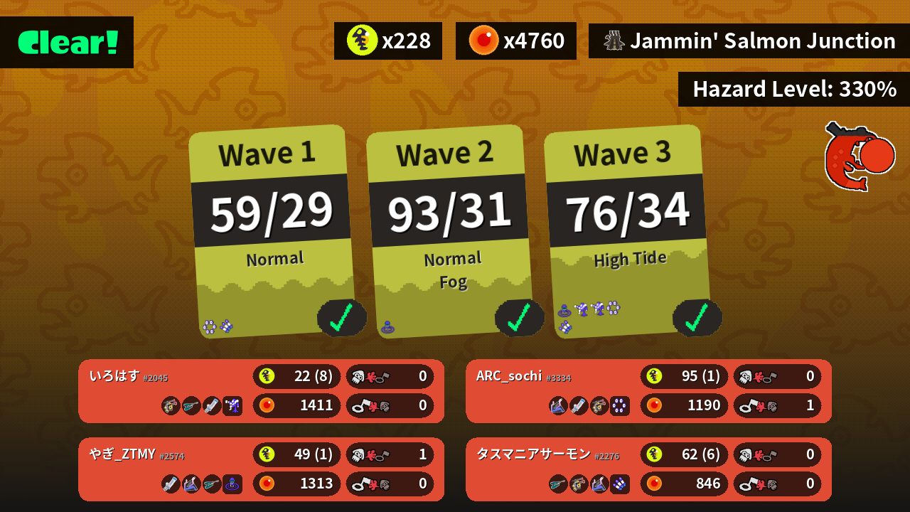 | Weapons | Douser Dualies FF Jet Squelcher Mint Decavitator | Slosher Mint Decavitator Douser Dualies FF | Jet Squelcher Douser Dualies FF Slosher | Mint Decavitator Slosher Jet Squelcher |