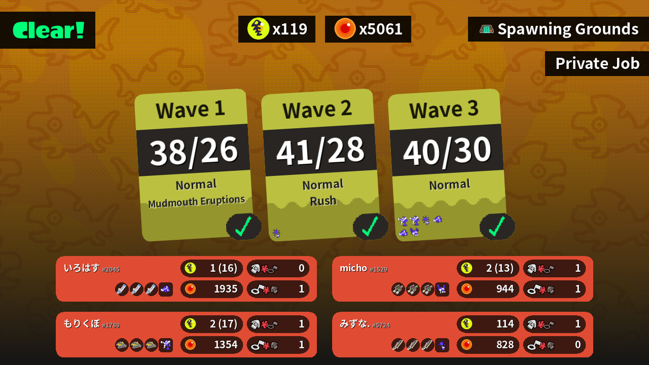| Weapons | Mint Decavitator Mint Decavitator Mint Decavitator | Splatana Wiper Splatana Wiper Splatana Wiper | Dread Wringer Dread Wringer Dread Wringer | Splat Dualies Splat Dualies Splat Dualies |