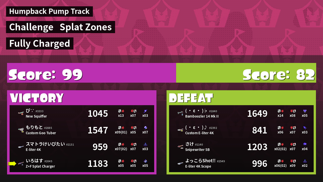 | Weapon | Z+F Splat Charger ( Splash Wall / Triple Inkstrike) |