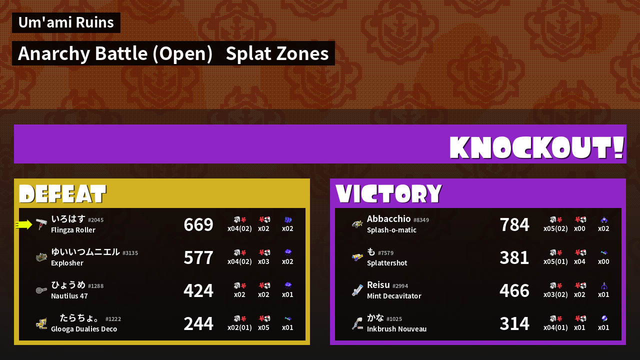 | Mode | Splat Zones - Anarchy Battle (Open) |