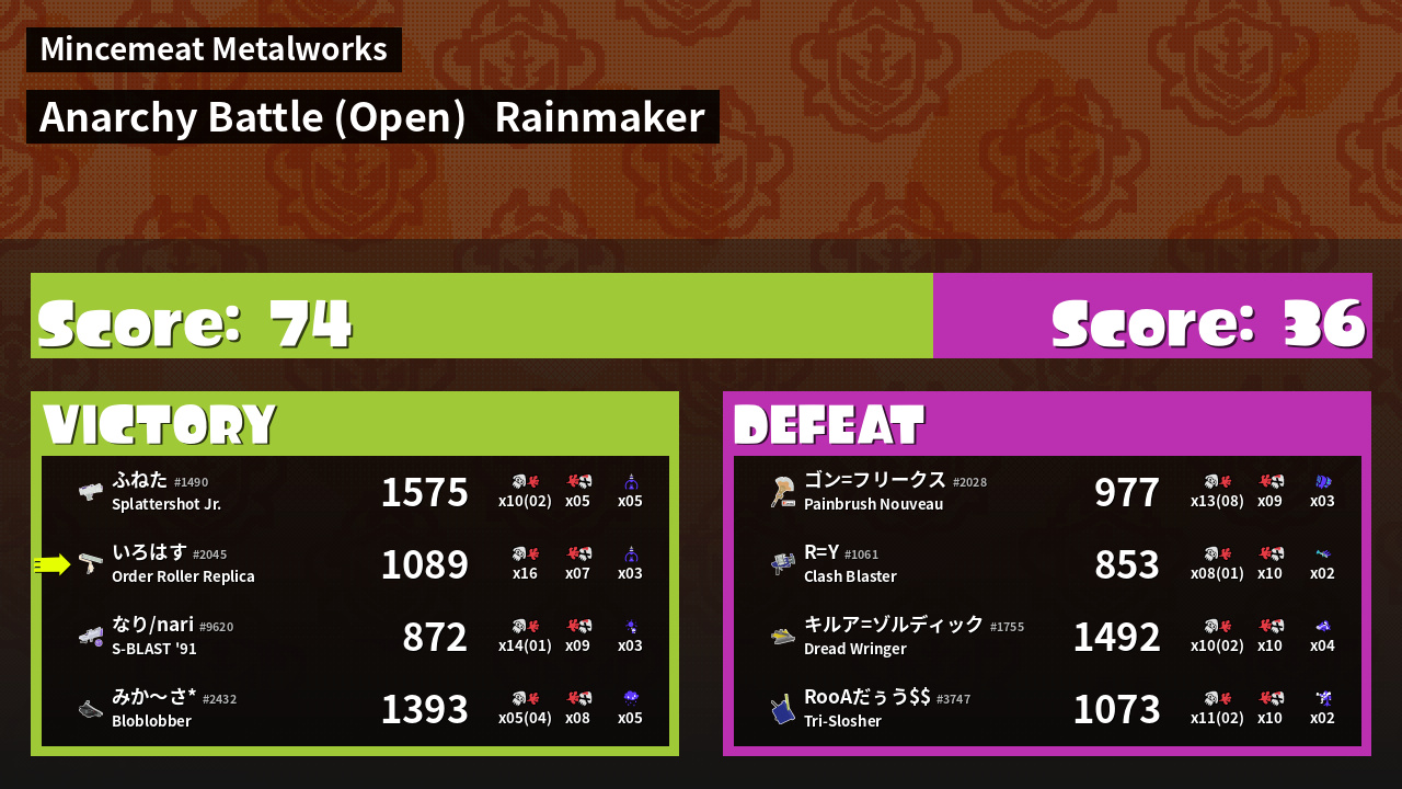 | Mode | Rainmaker - Anarchy Battle (Open) |