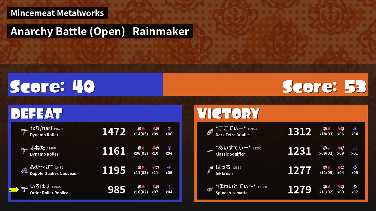 | Mode | Rainmaker - Anarchy Battle (Open) |