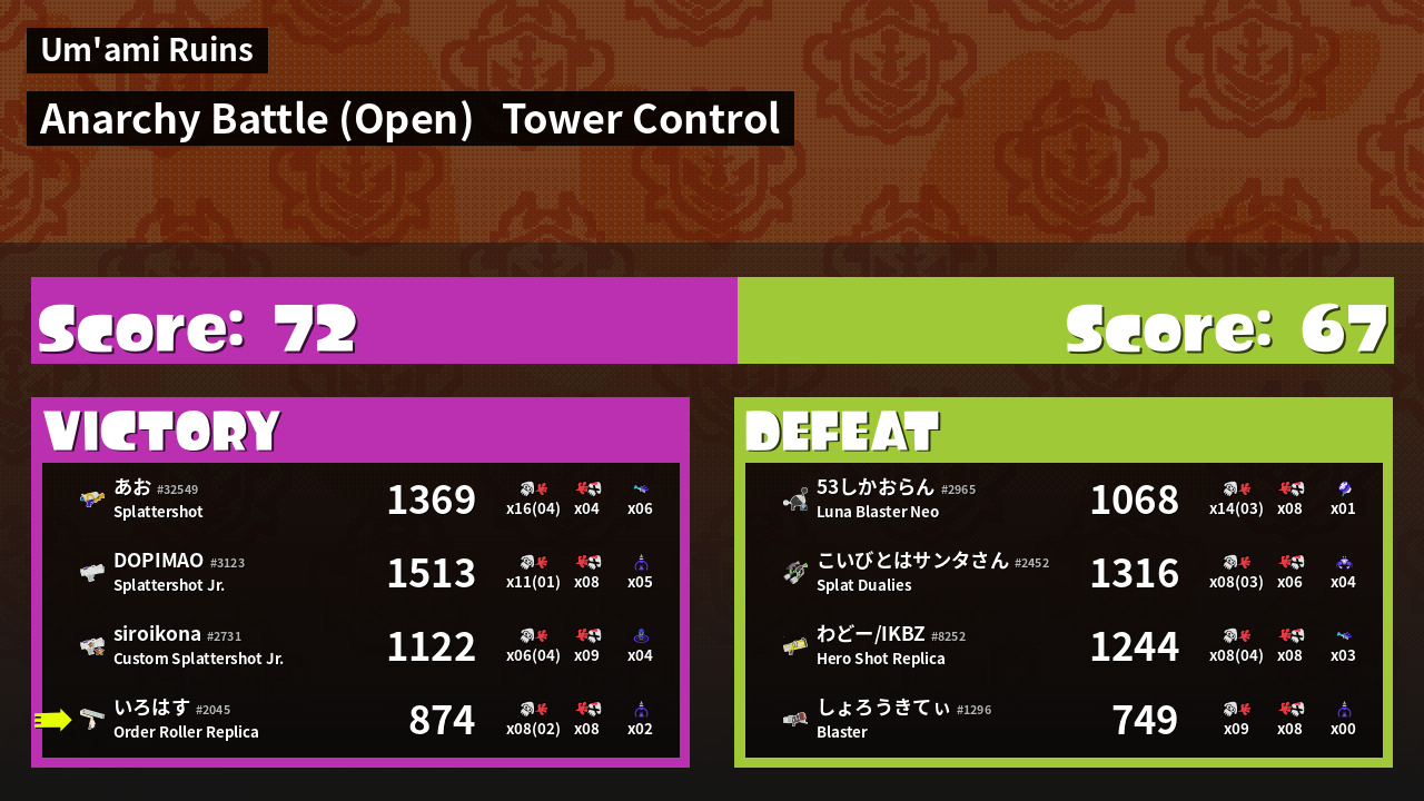 | Mode | Tower Control - Anarchy Battle (Open) |