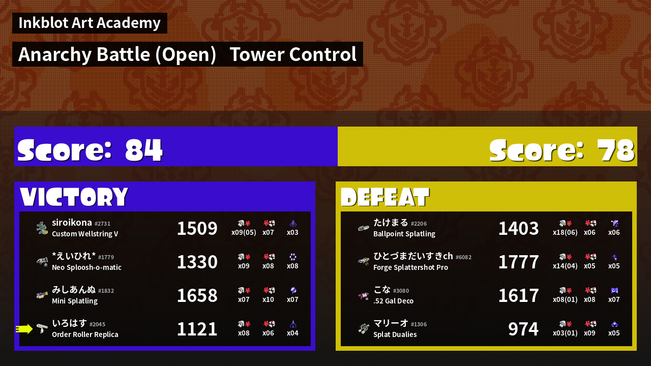 | Mode | Tower Control - Anarchy Battle (Open) |