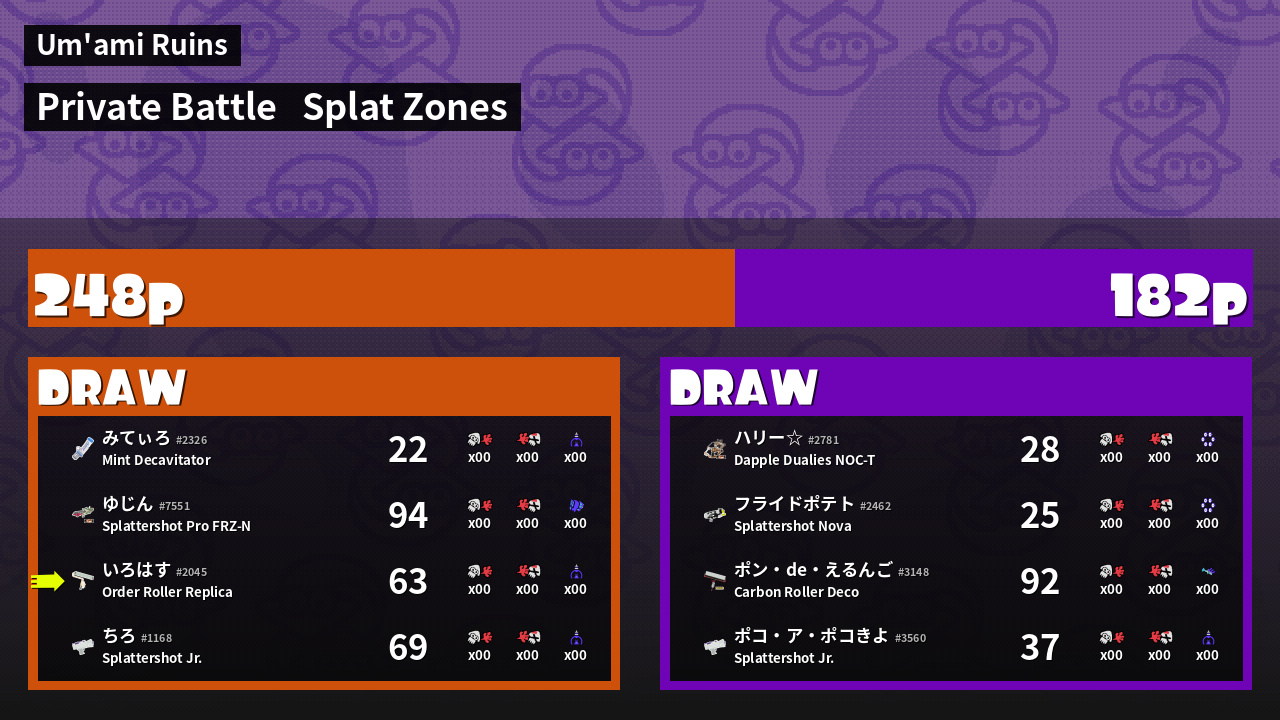 Results of い's Battle