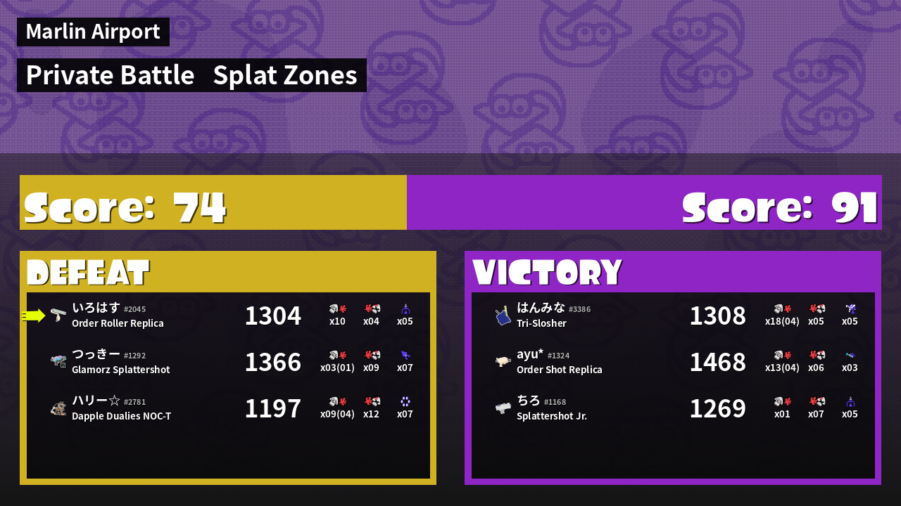 Results of い's Battle