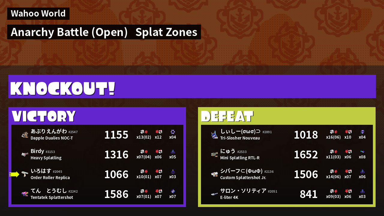 Results of い's Battle