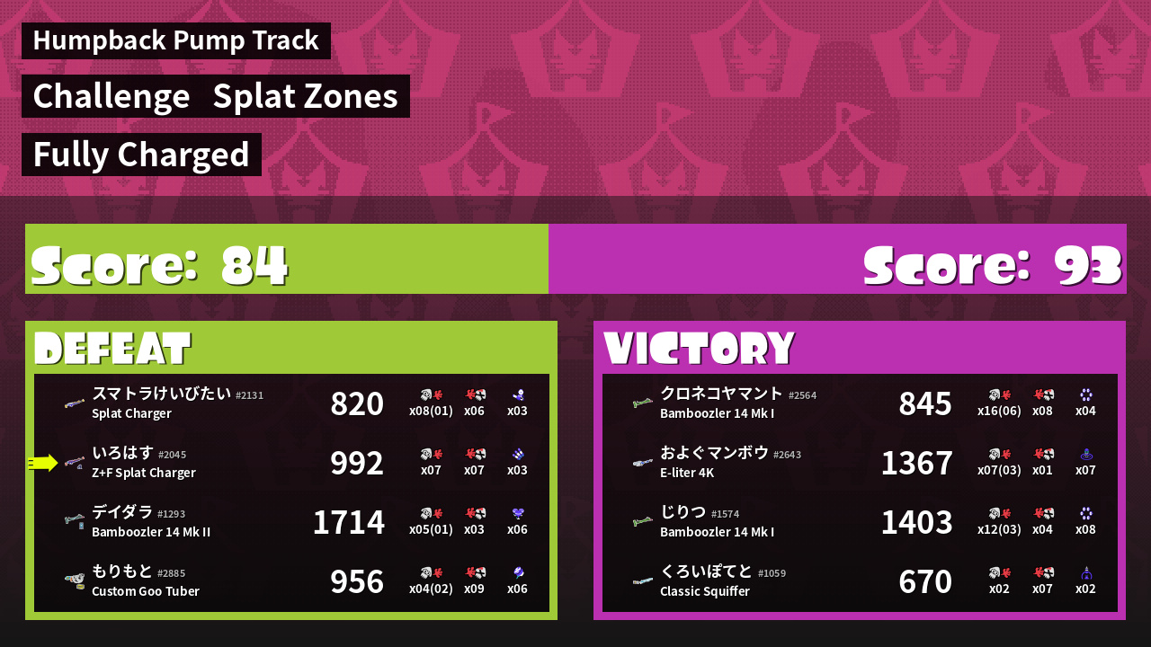 | Weapon | Z+F Splat Charger ( Splash Wall / Triple Inkstrike) |
