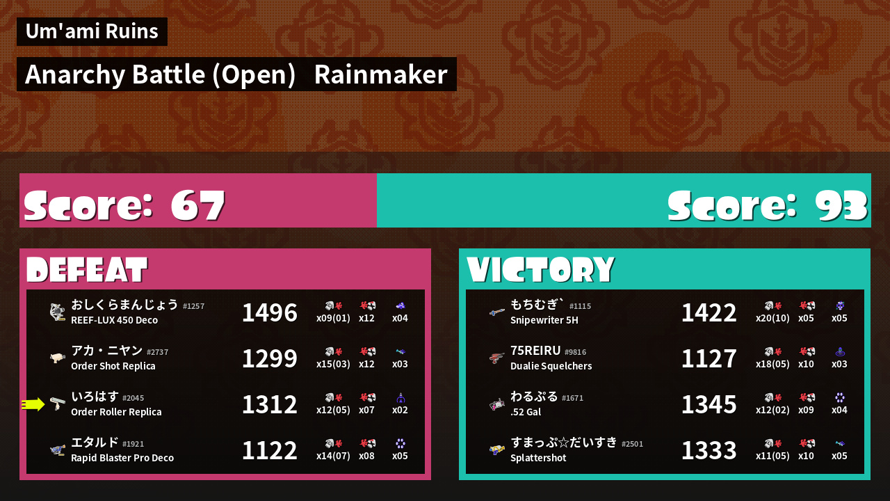 | Mode | Rainmaker - Anarchy Battle (Open) |