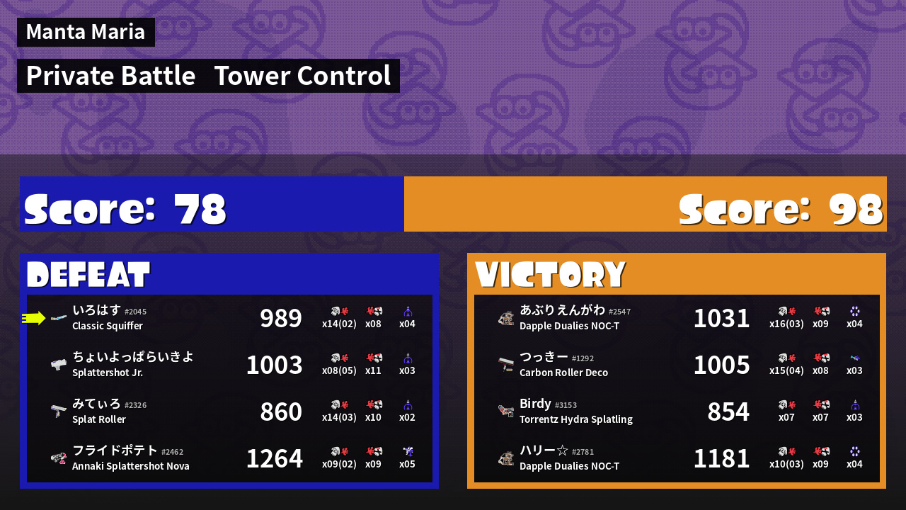 Results of い's Battle