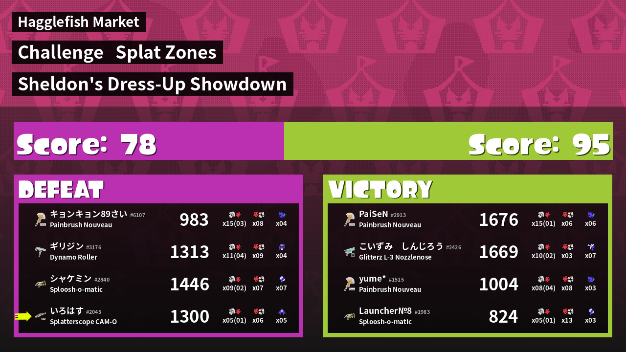 | Weapon | Splatterscope CAM-O ( Sprinkler / Crab Tank) |