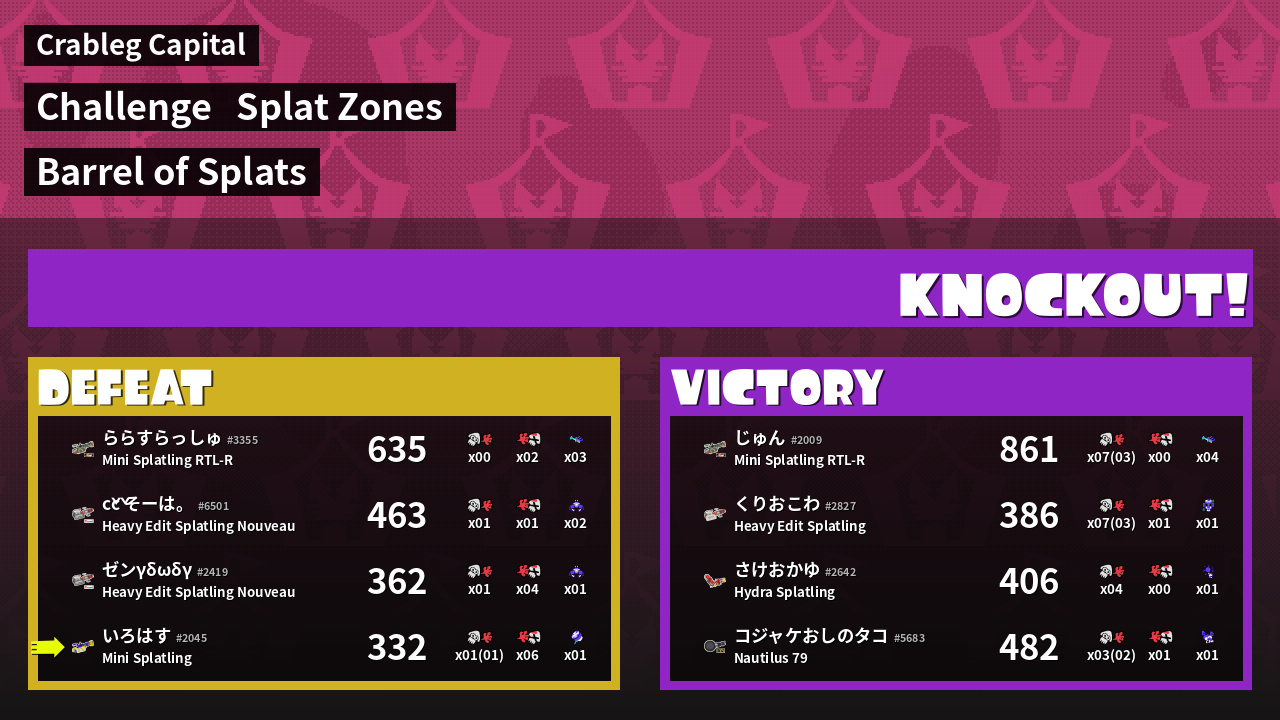 Challenge | Barrel of Splats Muster as much firepower as you can<br />in this battle of the splatlings! |