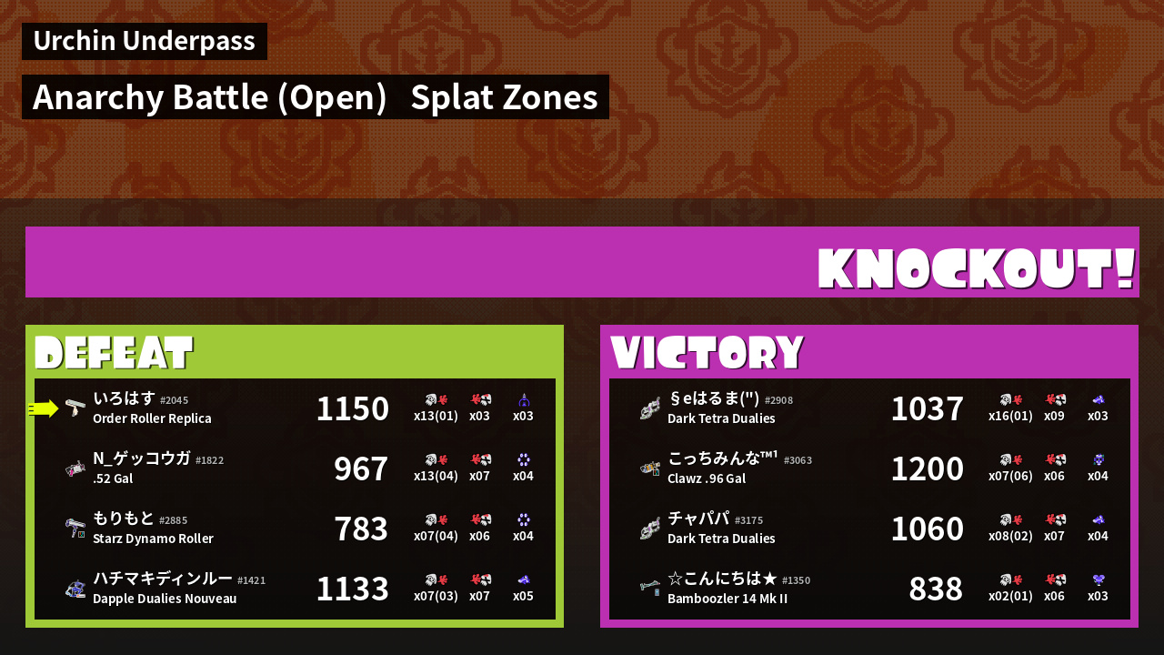 | Mode | Splat Zones - Anarchy Battle (Open) |
