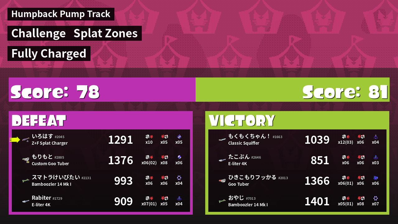 | Weapon | Z+F Splat Charger ( Splash Wall / Triple Inkstrike) |