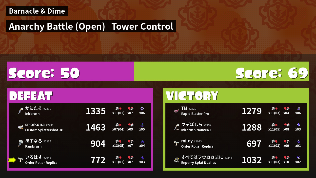 | Mode | Tower Control - Anarchy Battle (Open) |