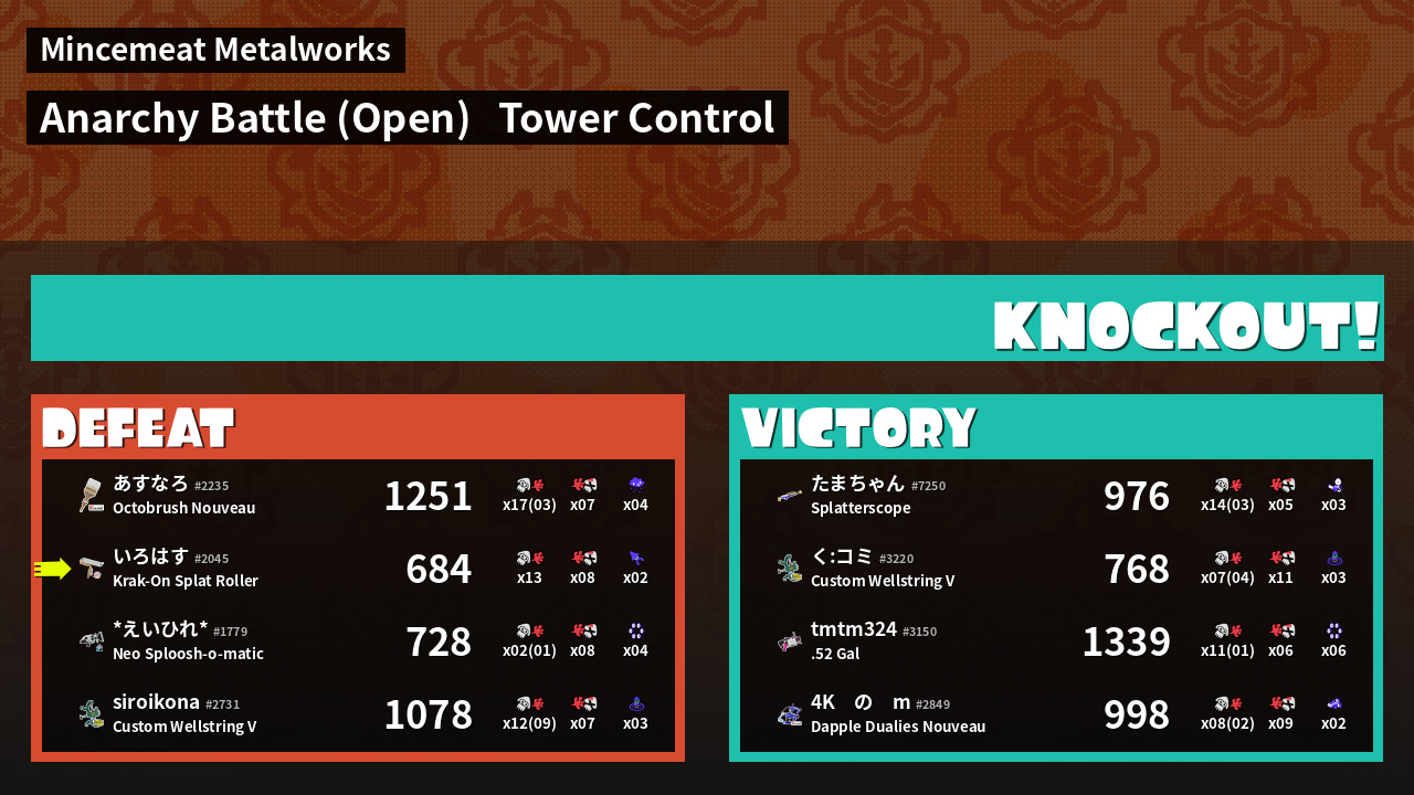| Mode | Tower Control - Anarchy Battle (Open) |