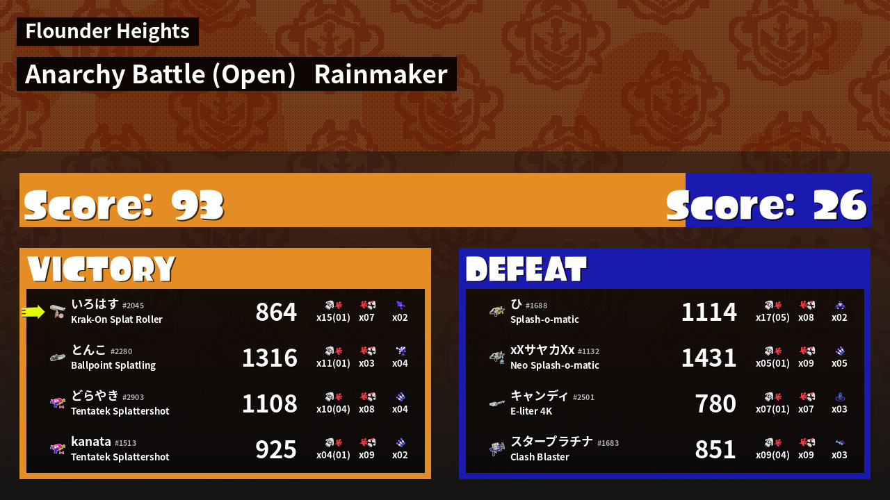 Results of い's Battle