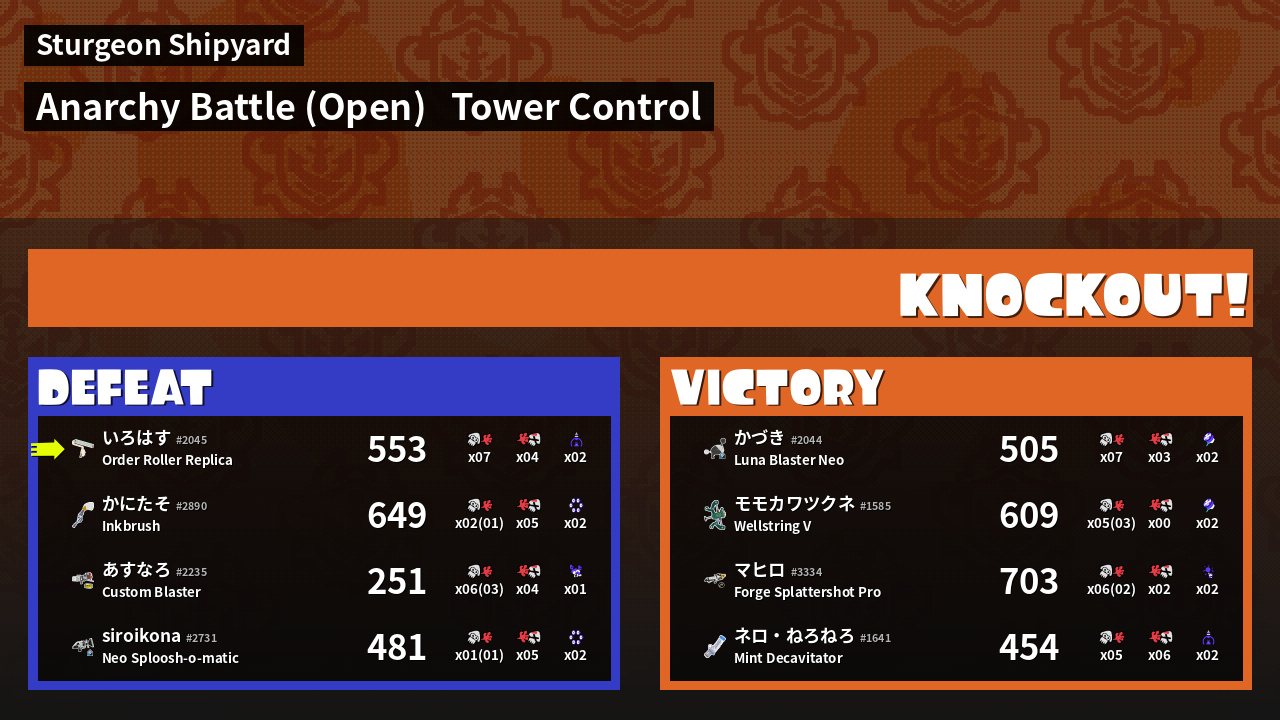 | Mode | Tower Control - Anarchy Battle (Open) |
