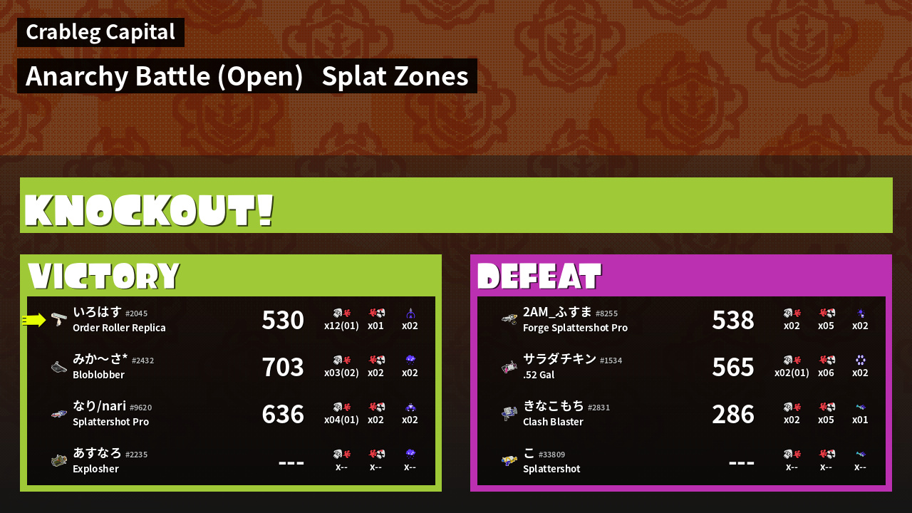 | Mode | Splat Zones - Anarchy Battle (Open) |