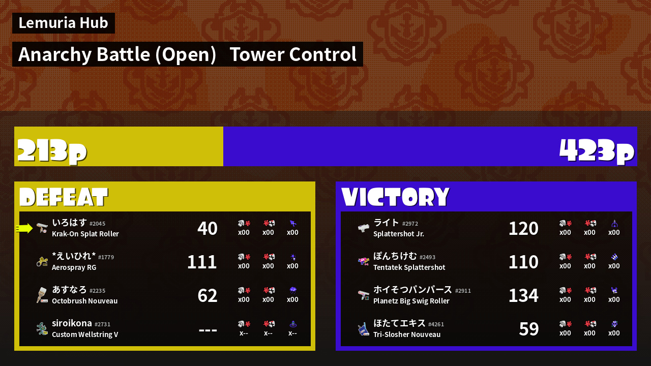 | Mode | Tower Control - Anarchy Battle (Open) |