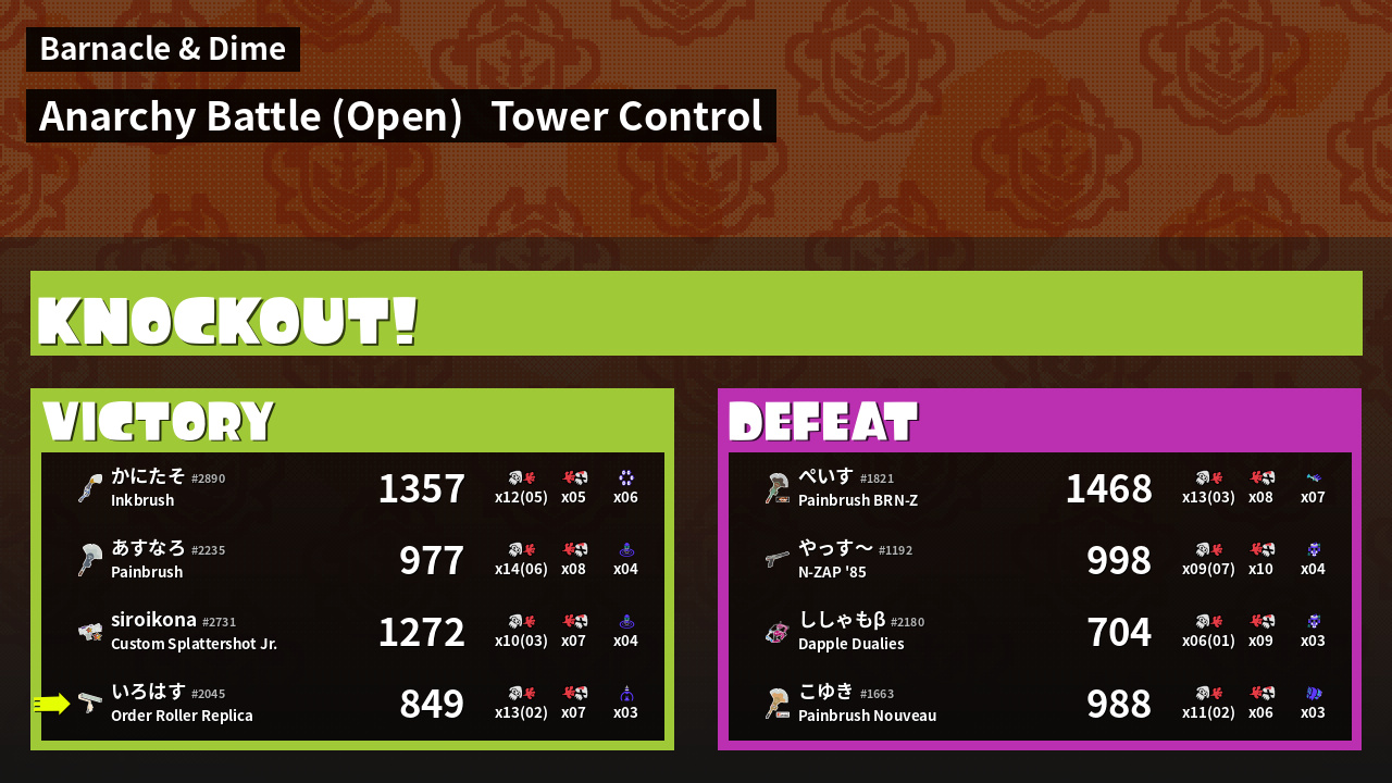 | Mode | Tower Control - Anarchy Battle (Open) |