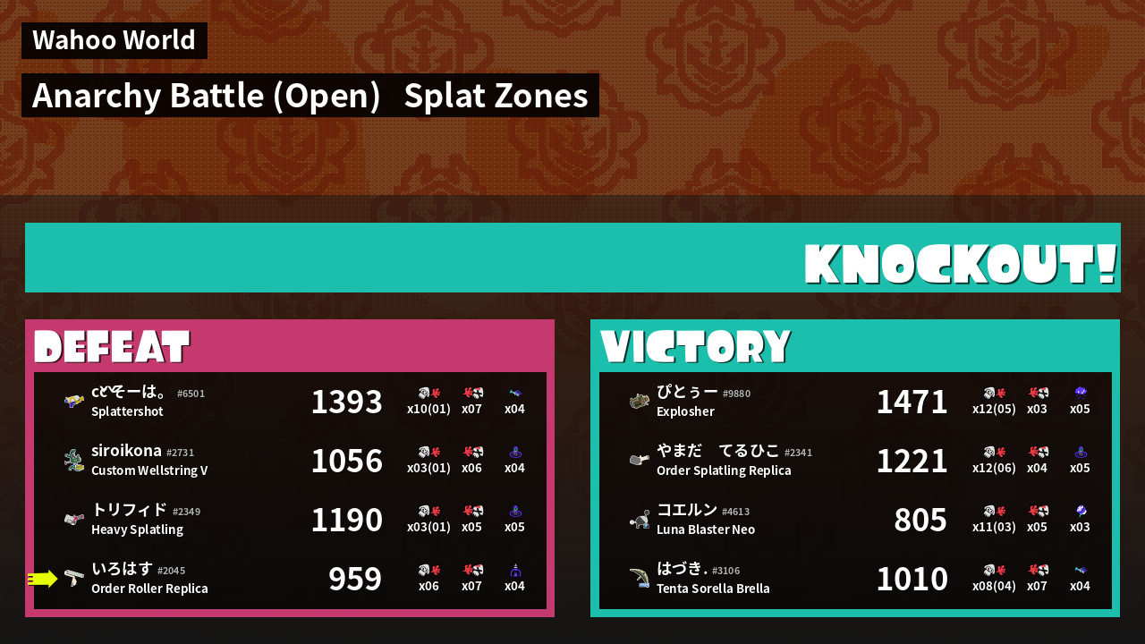 | Mode | Splat Zones - Anarchy Battle (Open) |