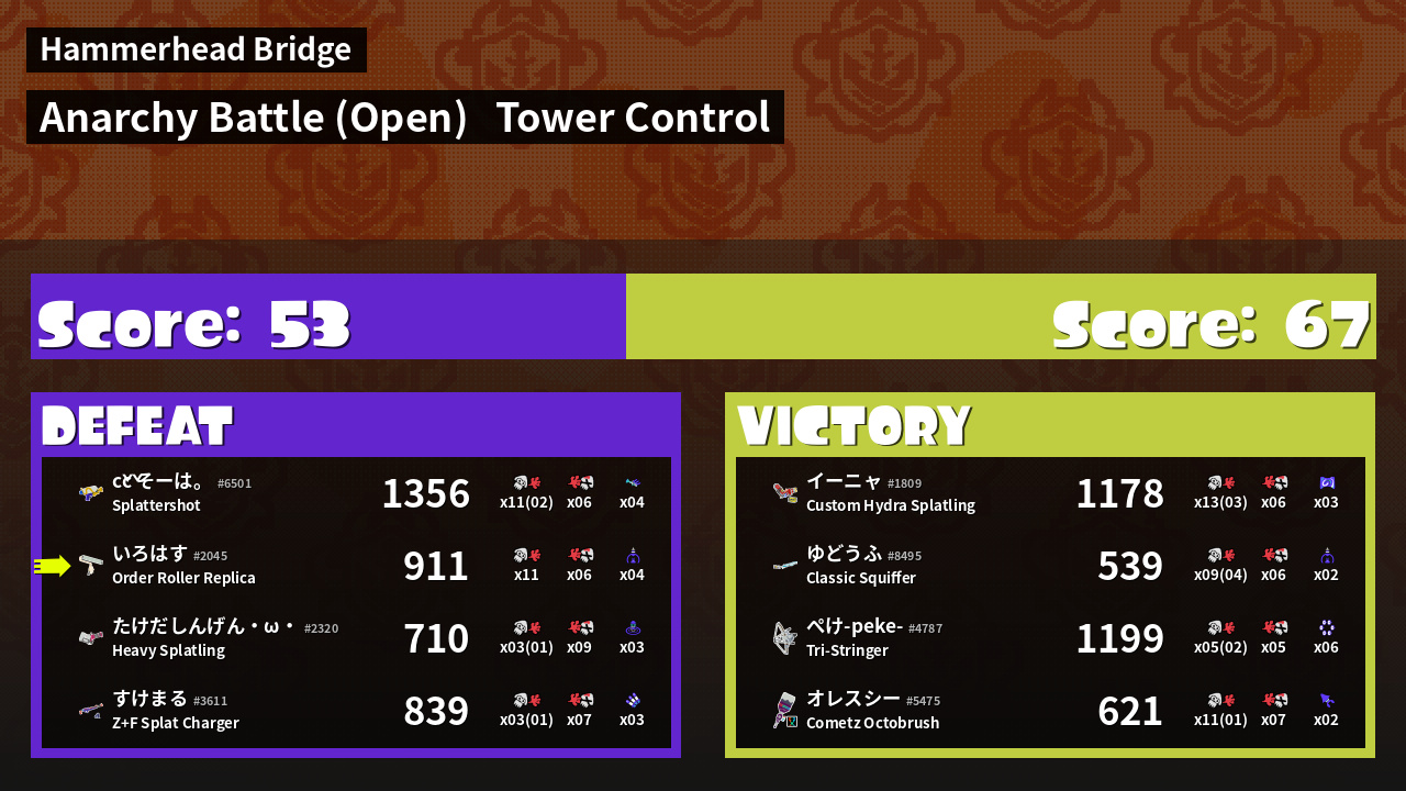 | Mode | Tower Control - Anarchy Battle (Open) |