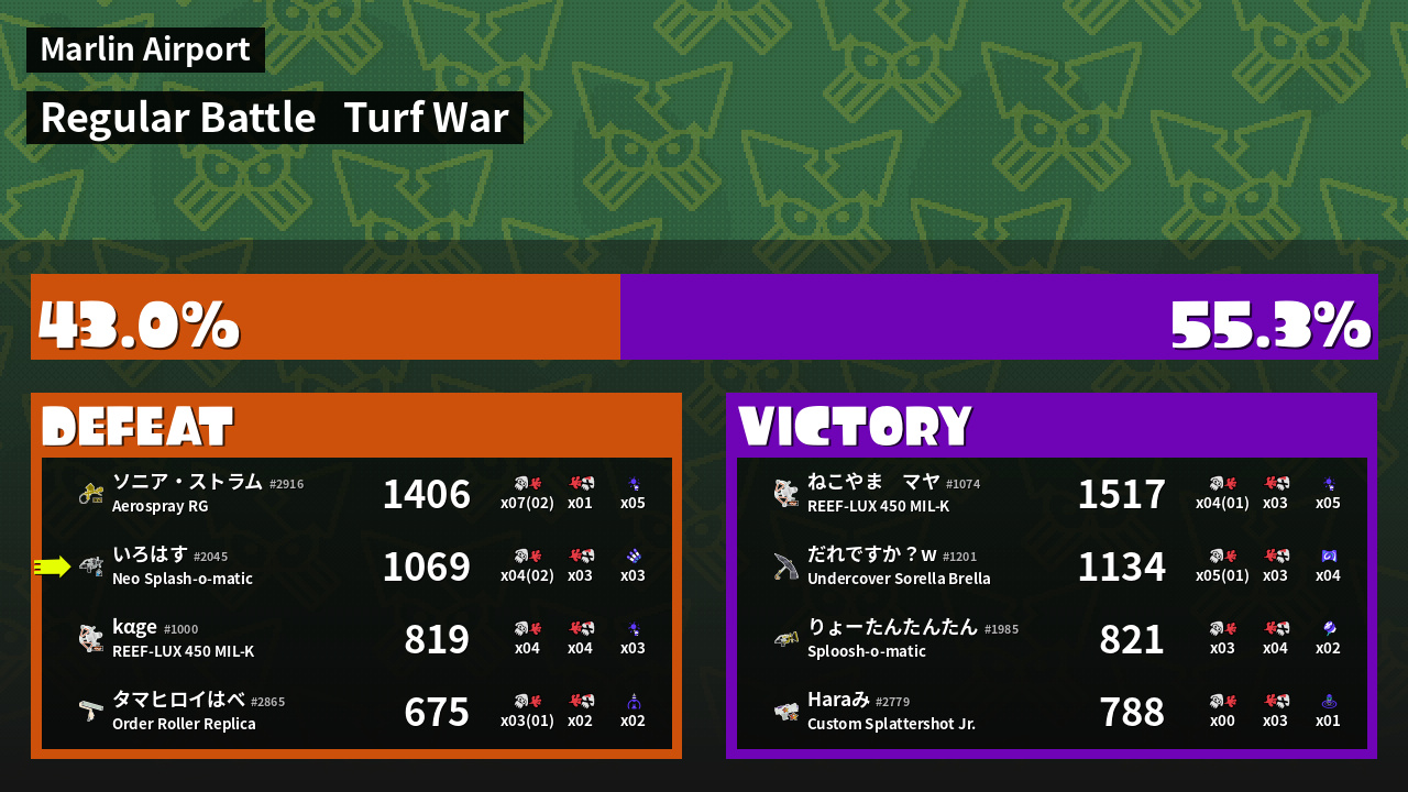 Results of い's Battle