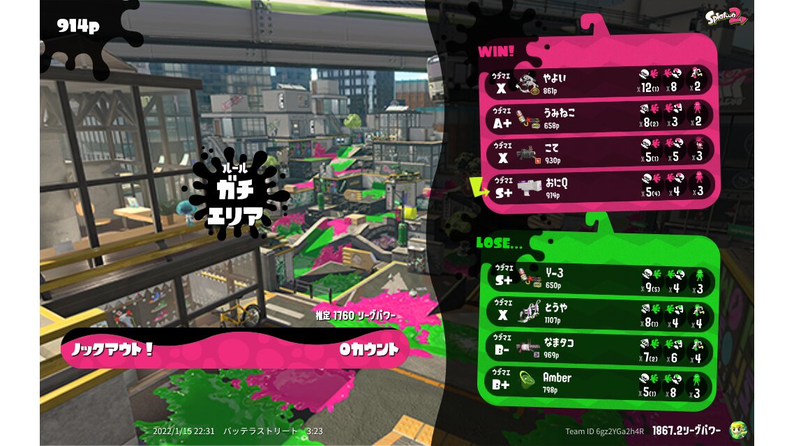 | Mode | Splat Zones - League Battle (Quad) | ||||||||||||||||||||||||||||||||||