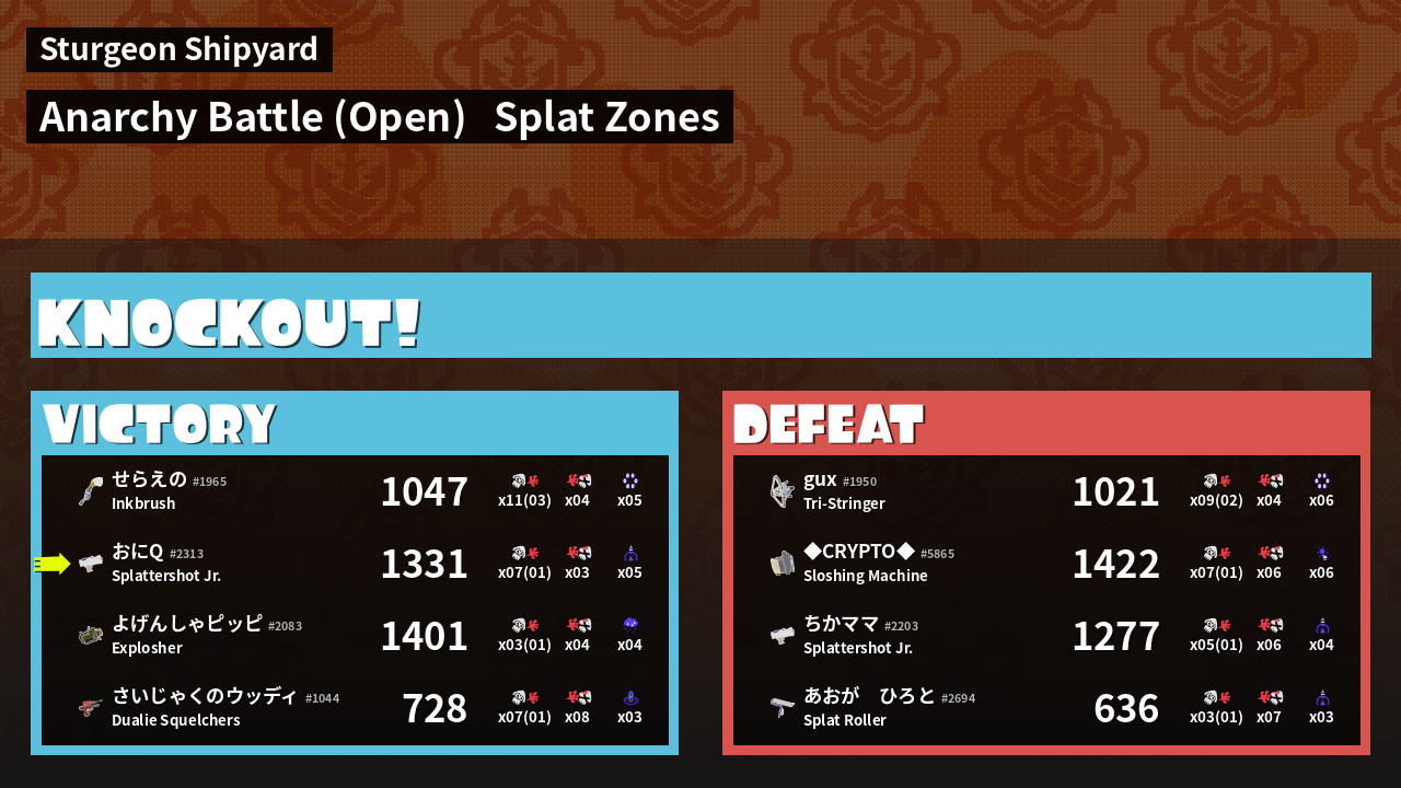 | Mode | Splat Zones - Anarchy Battle (Open) | ||