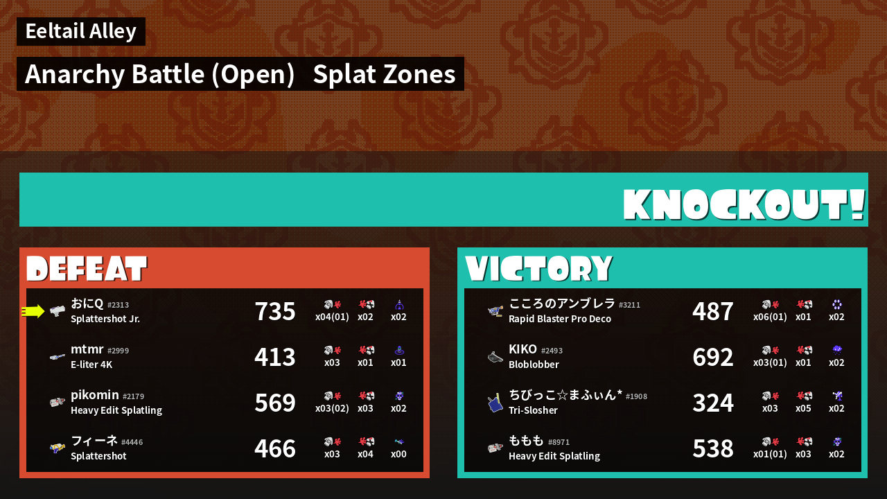 | Mode | Splat Zones - Anarchy Battle (Open) | ||