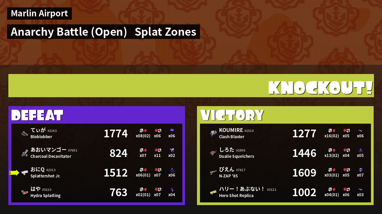 | Mode | Splat Zones - Anarchy Battle (Open) | ||