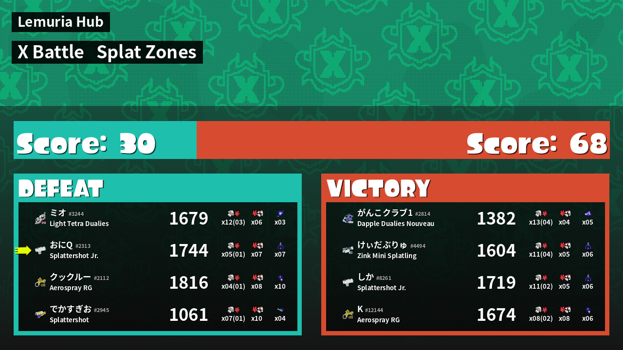 | Mode | Splat Zones - X Battle | ||