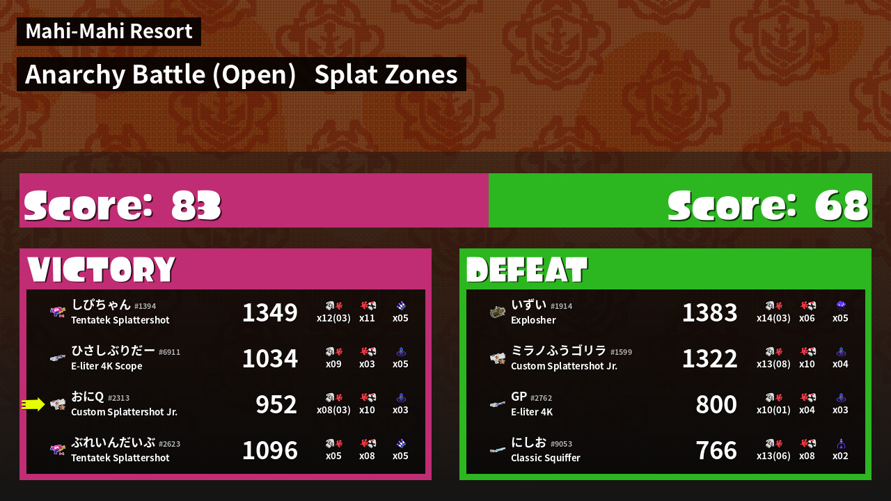 | Mode | Splat Zones - Anarchy Battle (Open) | ||