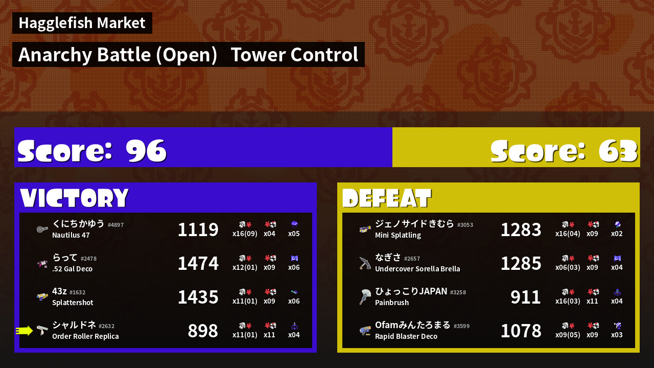 | Mode | Tower Control - Anarchy Battle (Open) | ||