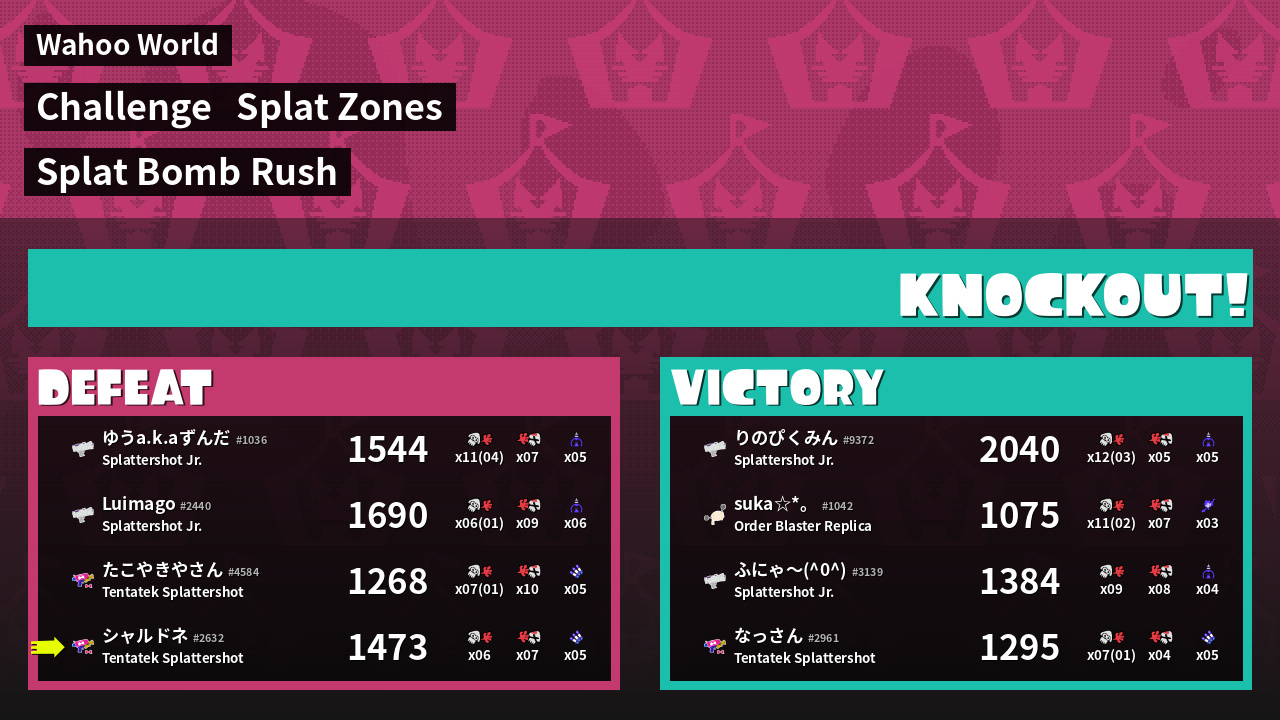 | Challenge | Splat Bomb Rush Let the Splat Bombs fly in this free-for-all! | ||