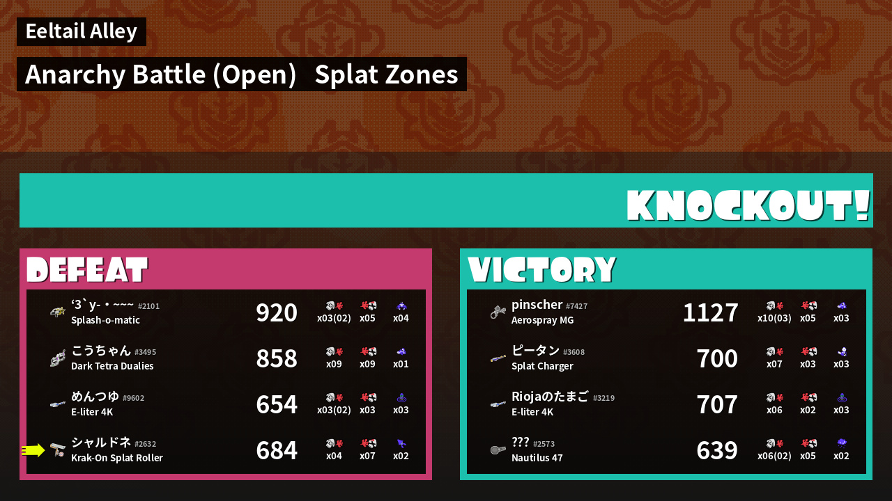 | Mode | Splat Zones - Anarchy Battle (Open) | ||