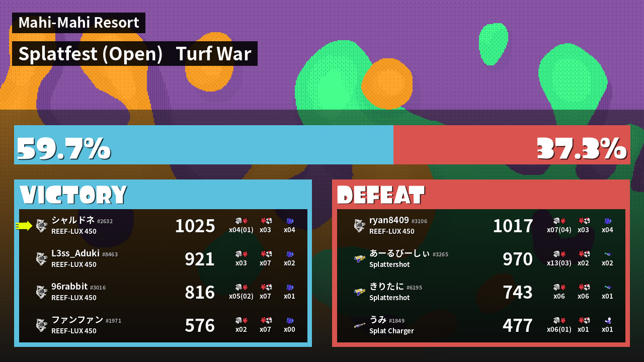 | Medals | #1 Turf Inker #1 Home-Base Inker #1 Enemy Splatter | ||