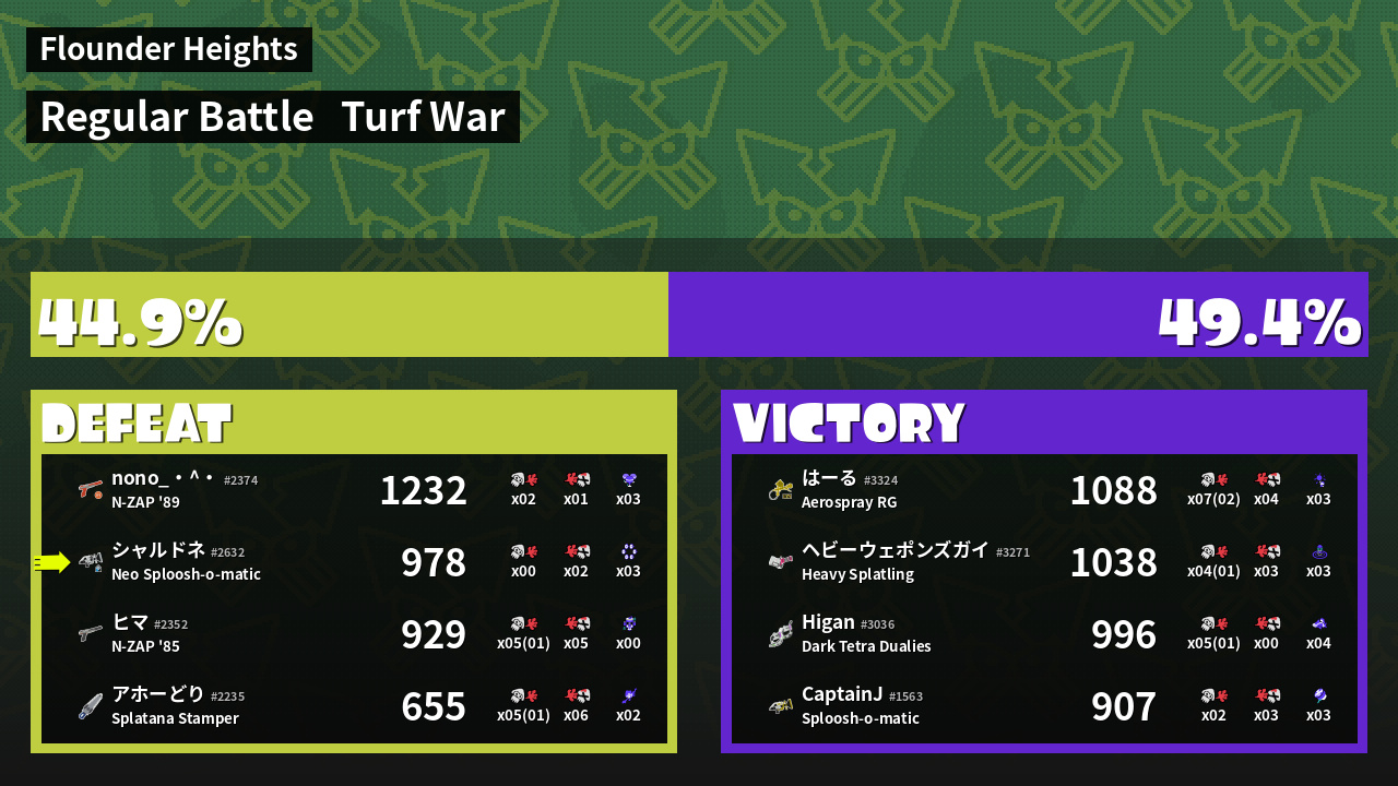 | Mode | Turf War - Regular Battle | ||