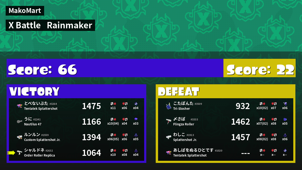 | Medals | #1 Damage Taker #1 Big Bubbler User #2 Overall Splatter | ||