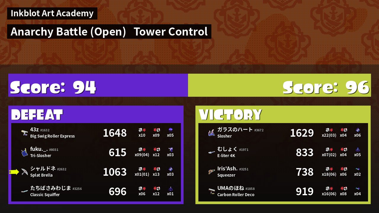 | Mode | Tower Control - Anarchy Battle (Open) | ||