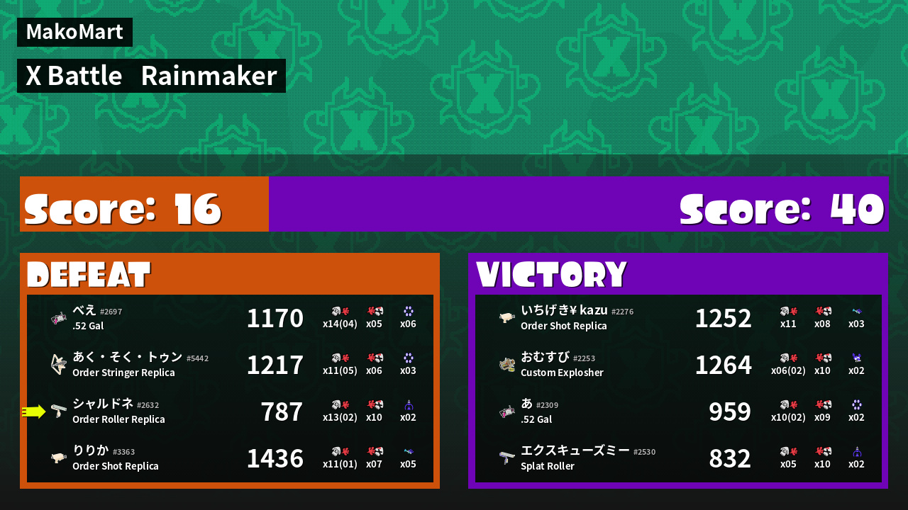 Kills / Deaths | 11 + 2 / 10 > Kill Ratio: 1.10 | ||