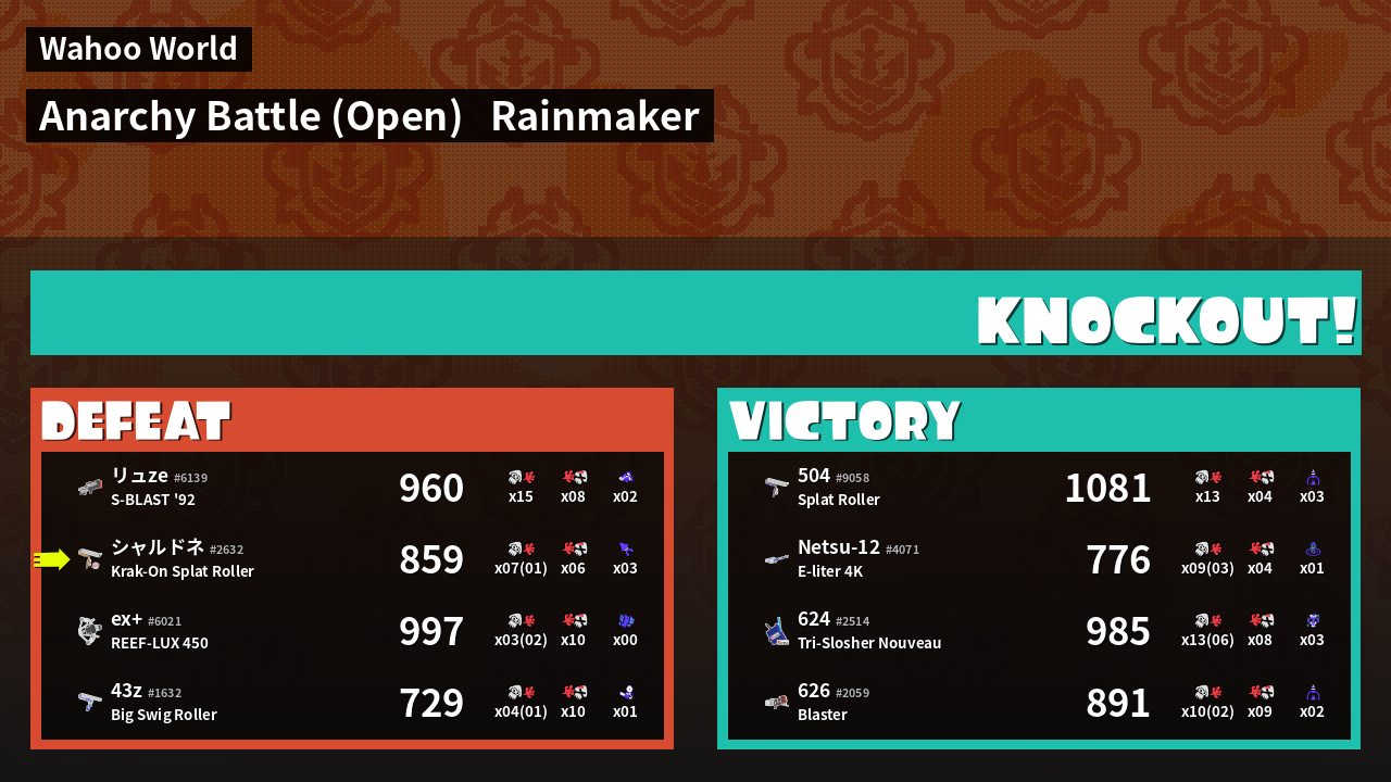 Kills / Deaths | 6 + 1 / 6 = Kill Ratio: 1.00 | ||