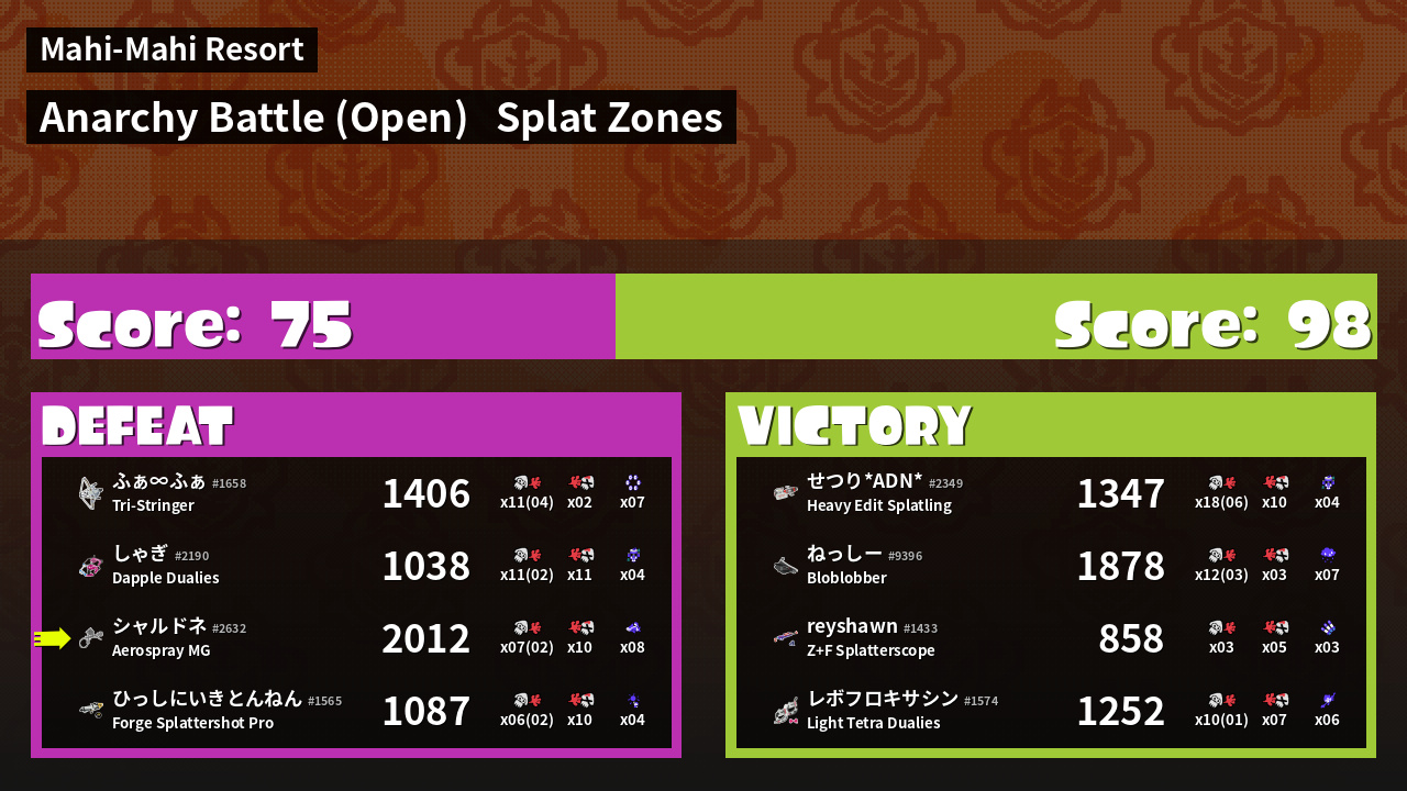 | Mode | Splat Zones - Anarchy Battle (Open) | ||