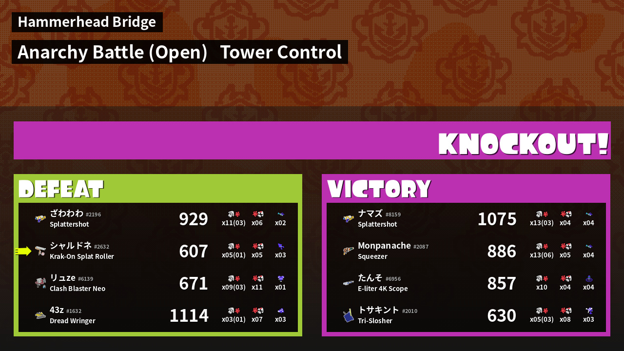 | Mode | Tower Control - Anarchy Battle (Open) | ||